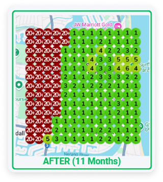 Clear visibility on where you're in the Top 3 (Green Zone) and where you're missing out.